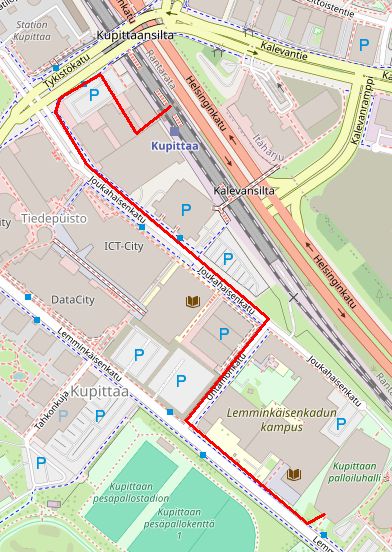 Junalla Helsingin suunnasta tullessa kannattaa jäädä pois Kupittaan asemalla. Asemalaiturilta pääsee hissillä aulaan, josta poistutaan Tykistökadun suuntaan ja kartan osoittamaa reittiä (noin 700 metriä) edelleen kokouspaikalle. HUOM: Sunnuntaina 24.5. paluujunat kulkevat vain Kirkkonummelle asti Espoon kaupunkiradan ratatöiden takia. Korvaavista vaihtoehdoista voi kysyä VR:n esteettömän matkustamisen maksuttomasta palvelunumerosta 0800 188 822.